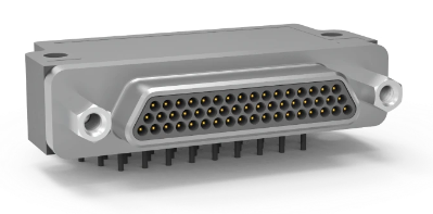 堅固型 Micro-D 連接器, 微型, 0.050“/1.27mm間距, 高溫, 金屬主體, 電路板安裝, 電鍍通孔 (PTH), 直角插座, 窄尺寸, 帶安裝耳。1 排,尺寸:4-25