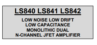 Linear Systems LS840 系列低噪聲、低漂移、低電容、單芯片雙 N 溝道 JFET 放大器是 Fairchild、Motorola、National 和 Siliconix-Vishay 器件系列的引腳對引腳替代產品。采用 TO-71 6L、TO-78 6L、PDIP 8L 和 SOIC 8L RoHS 封裝,以及裸片。