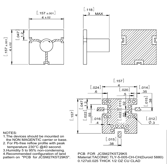 PCB材料:Taconic TLY-5-005-CH-CH(等效于Rogers Duroid 5880)